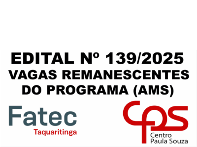 A Faculdade de Tecnologia de Taquaritinga “Prof.ª Marlene Maria Miletta Servidoni”, vem por meio deste informar o resultado e a lista de classificados doEDITAL Nº 139/2025 PARA AS VAGAS REMANESCENTES DO PROGRAMA DE ARTICULAÇÃO MÉDIO […]