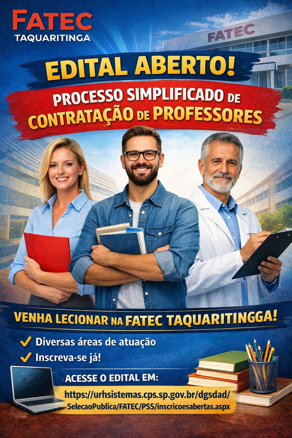 *ABERTURA de inscrições de Processo Seletivo Simplificado, para a função de Professor de Ensino Superior na Fatec Taquaritinga*