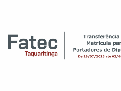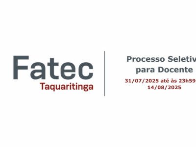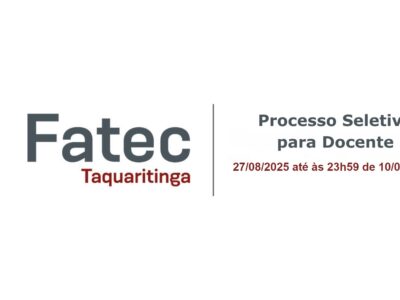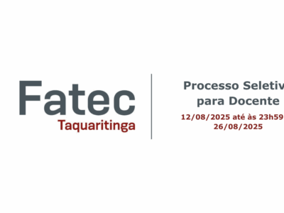 *ABERTURA de inscrições de Processo Seletivo Simplificado, para a função de Professor de Ensino Superior na Fatec Taquaritinga* INSCRIÇÕES: *12/08/2025 até às 23h59 de 26/08/2025* Para inscrever–se, o candidato deverá: a) acessar o site www.cps.sp.gov.br. b) clicar em Fatec […]