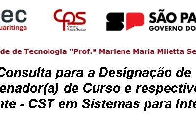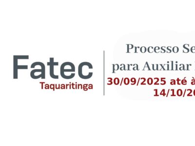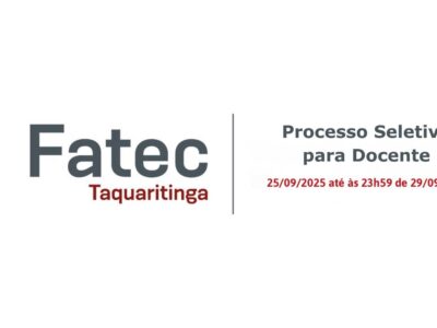 ABERTURA de inscrições de Processo Seletivo Simplificado, para a função de AUXILIAR DOCENTE na área de INFORMÁTICA na Fatec Taquaritinga INSCRIÇÕES: 30/09/2025 até às 23h59 de 14/10/2025 Para inscrever–se, o candidato deverá: a) acessar o site https://urhsistemas.cps.sp.gov.br/dgsdad/selecaopublica b) Clicar em FATECs > PROCESSO SEL. […]